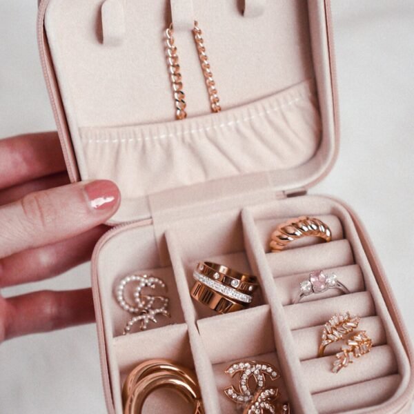 Elmansouri Luxus-Reise-Schmuckkästchen – Kompakter Samt-Organizer für Ringe, Ohrringe und Halsketten